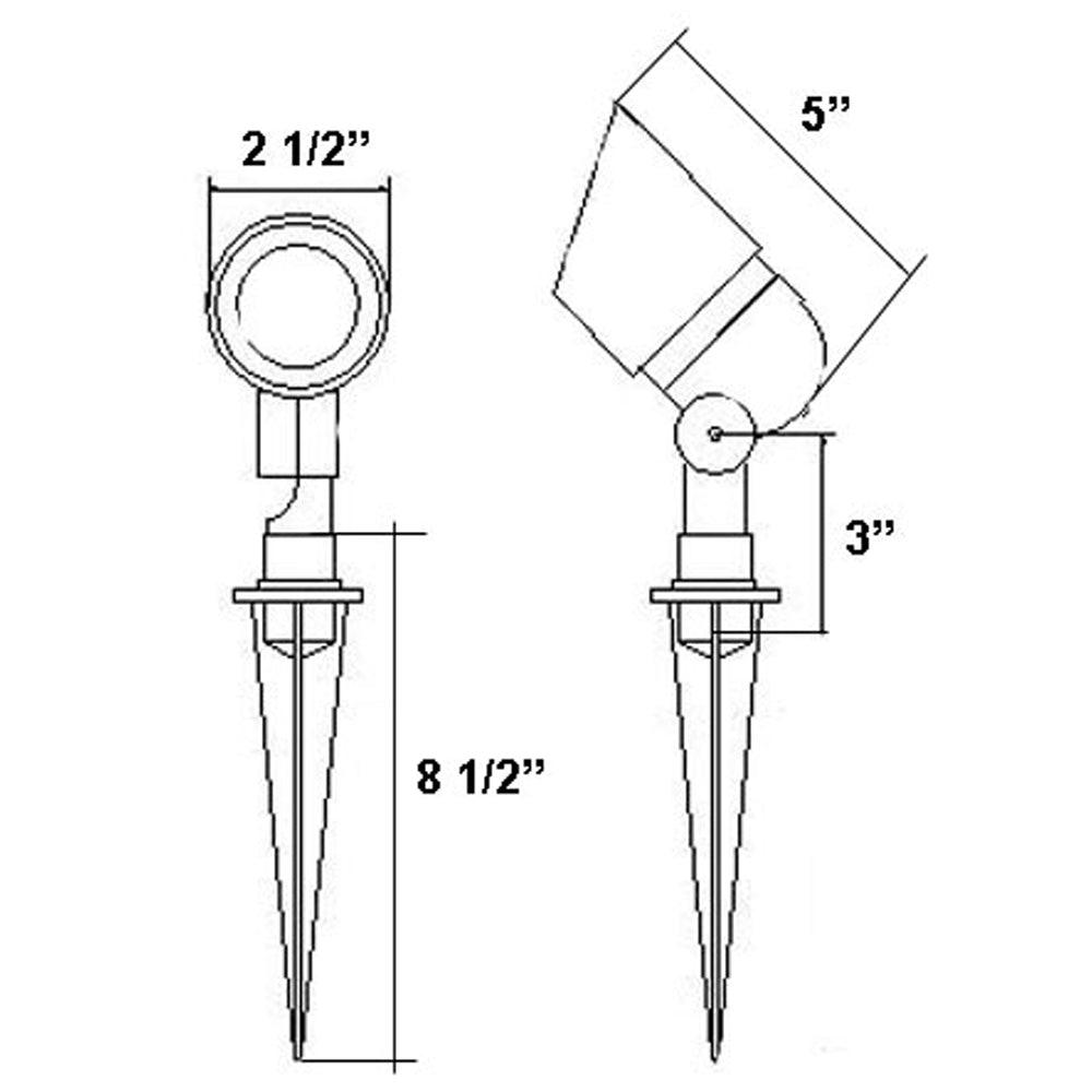 A bi-pin base compatible for any MR16 12V LED bulb to be added to give it a cozy ambiance, achieving an excellent illumination effect for you. Its size is 5" (L) x 2.5" (W) x 3" (H) and includes a ground plastic spike for durability in the ground. This directional mono point light can transform the alleys, loading docks, doorway, pathways, driveways, streets, patios or any other landscape places into sleek and modern.