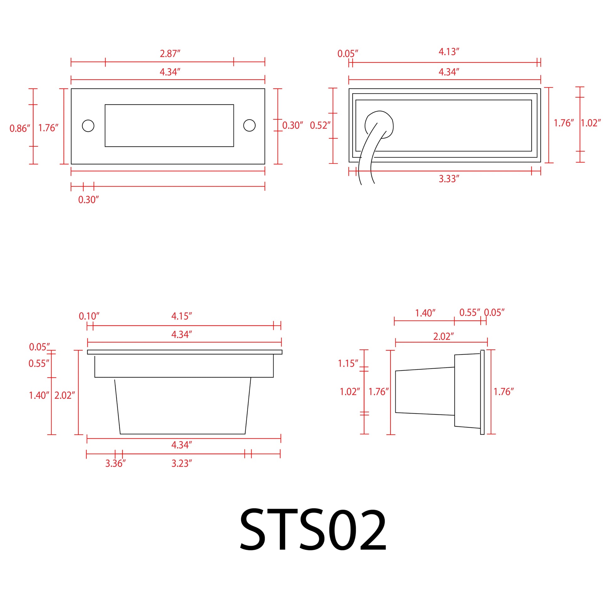 The dimensions of the brick step light are 4.31" (L) x 1.75" (H) x 2" (D). This low voltage LED brick light is energy-saving and IP65 waterproof, so it will definitely lessen your electricity cost and be able to work in wet weather conditions. It can be an ideal place for stairs, decks, retaining walls, patios, footbridge or any other indoor and outdoor landscape places.